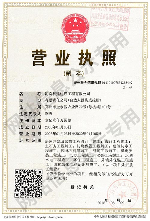 河南科建建設(shè)工程有限公司是一家以房屋建筑、建筑裝飾、建材貿(mào)易及大型建筑機械設(shè)備租賃為主營業(yè)務(wù)的成長型企業(yè)。擁有建筑工程總承包壹級資質(zhì),裝飾裝修、防水防腐保溫等專業(yè)承包壹級資質(zhì),注冊資本1.1億元。